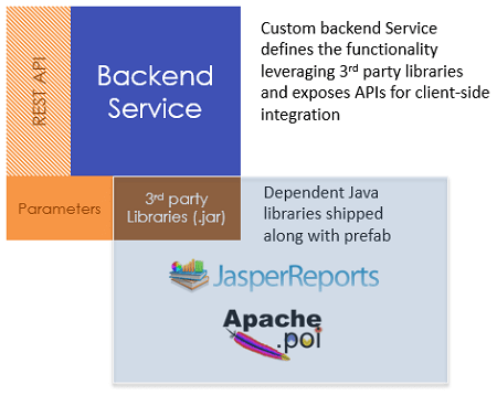 5. Re-usable backend Services can be built leveraging 3rd party Java Libraries – Jasper reports, Apache POI, etc.