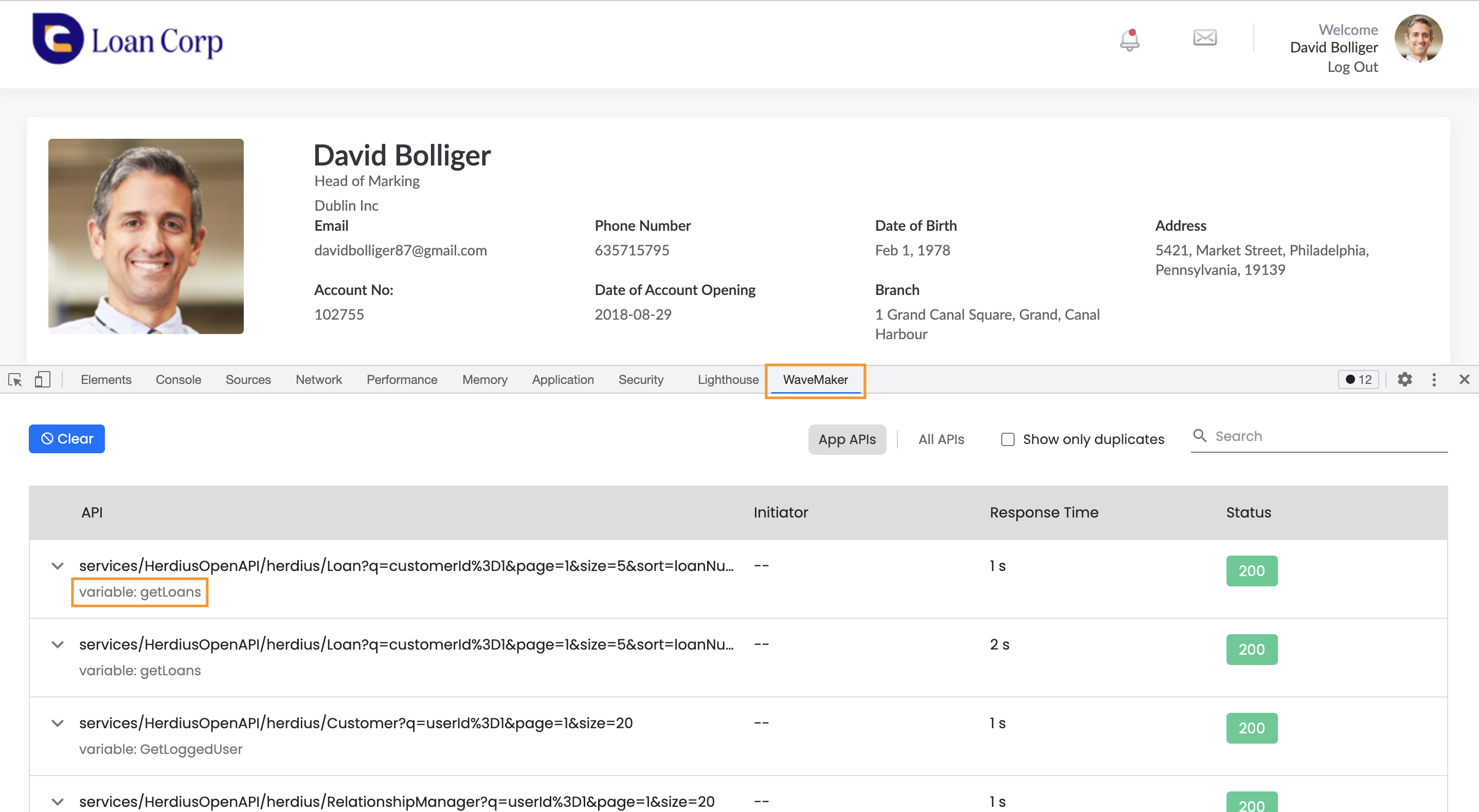WaveMaker Devtool Chrome extension helps ease the debugging process and improve the application performance. Once you install the extension and preview a WaveMaker application on Preview mode, you can: