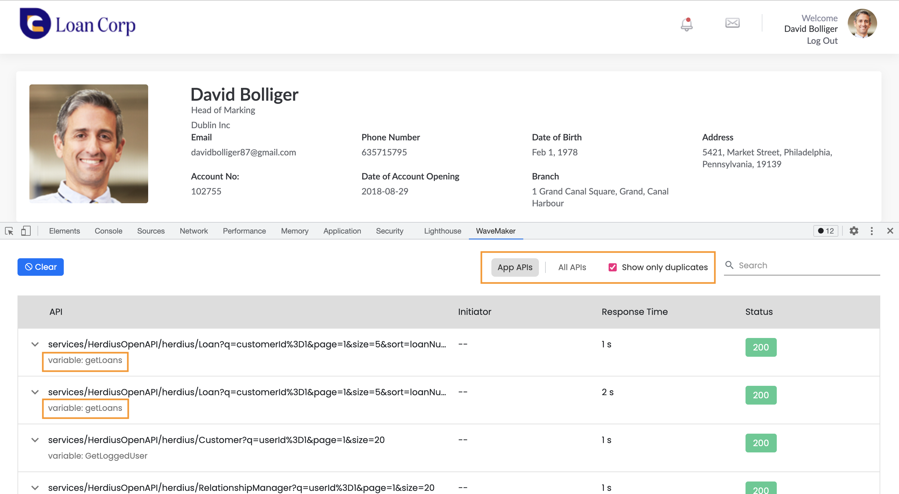 - View the duplicate requests triggered on the page using the Show only duplicates option.