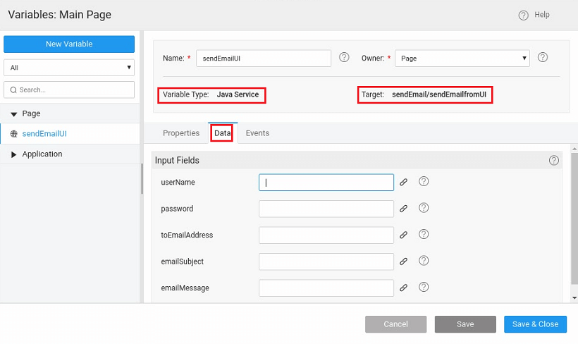 - To invoke the Java Service create a new Variable for Java Service: