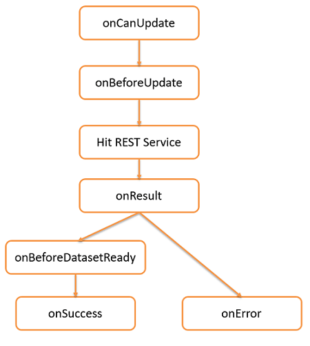 - The response is returned which is handled by the Service. It also invokes the events after getting the data.