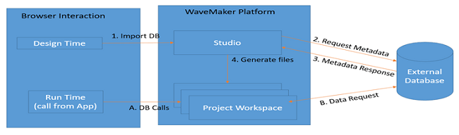The following figure gives an overview of the Database integration process within WaveMaker App.