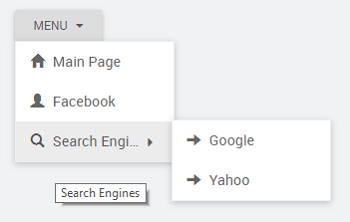 WaveMaker Dropdown Menu widget allows one to display a label, an icon and a link to be opened on click event. The data source for the Menu can be a Model variable or from a database. The structure of the data source should contain fields which can be set: