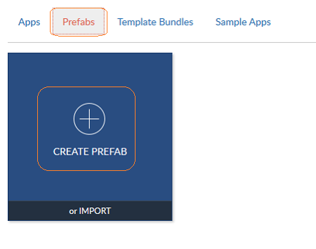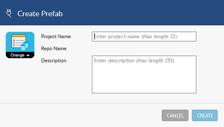 - From the Prefab tab in Project Dashboard, click on the Create Prefab icon.
