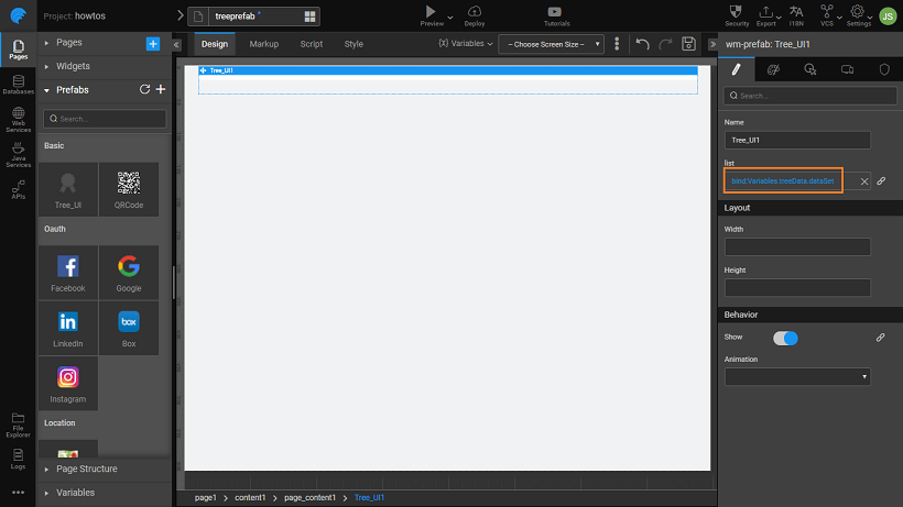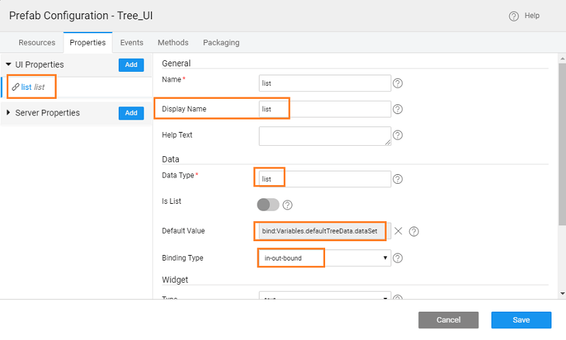 - You can bind the prefab list property to any list and change the tree structure. We have created a static variable with the following structure and bound it to the list property.