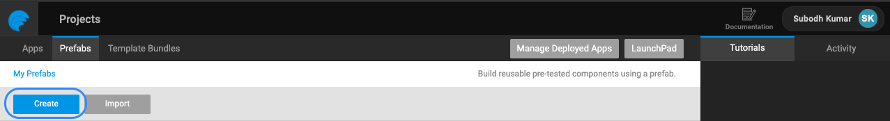 • Create a Prefab project using the Prefab tab of the Project Dashboard.