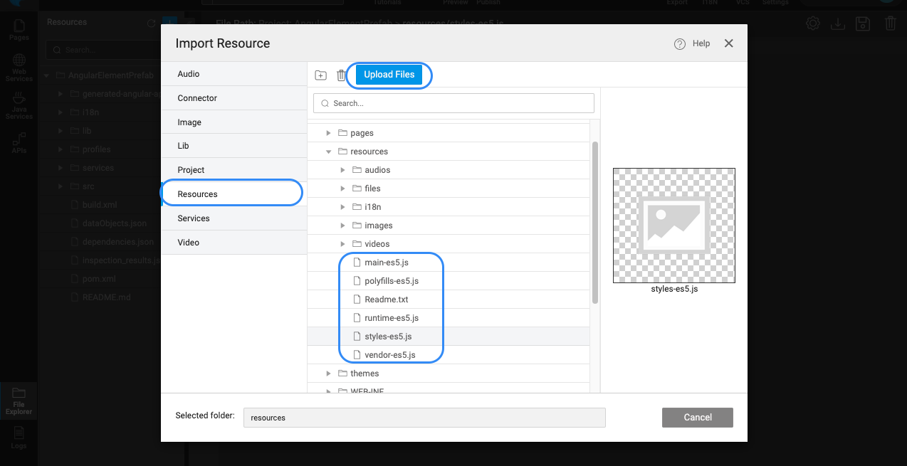 • Upload the artefacts into the Resources folder of project as shown below.