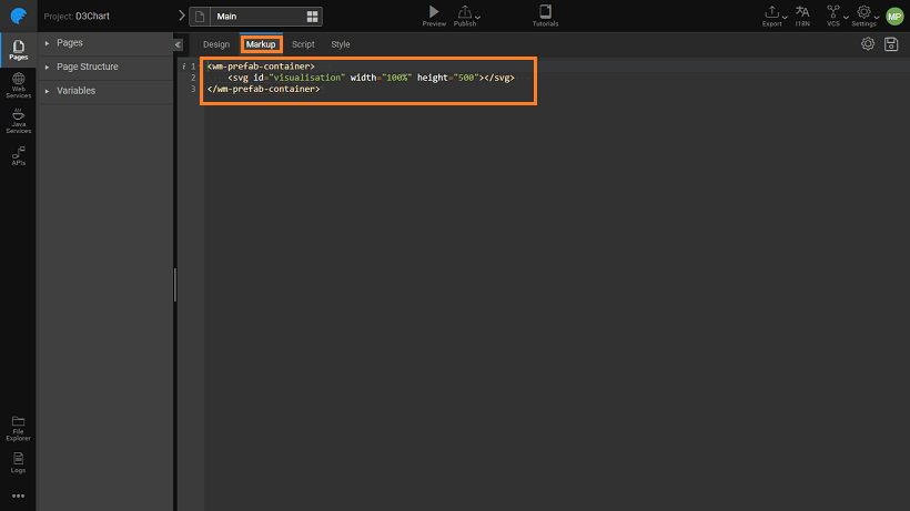 Prefab.onPropertyChange = propertyChangeHandler;- Enter the following code (you can copy and paste the same). This code is to set up the visual rendering of D3 chart.