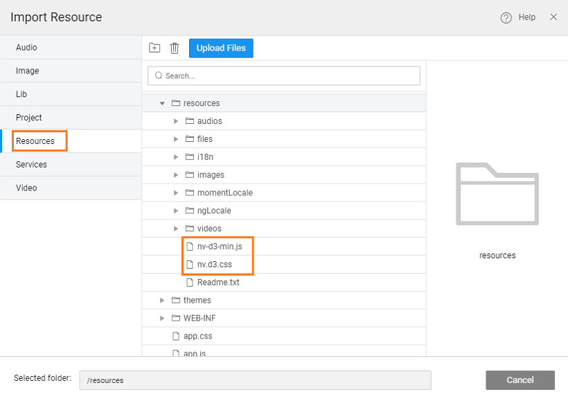 - From Resources, add the js files