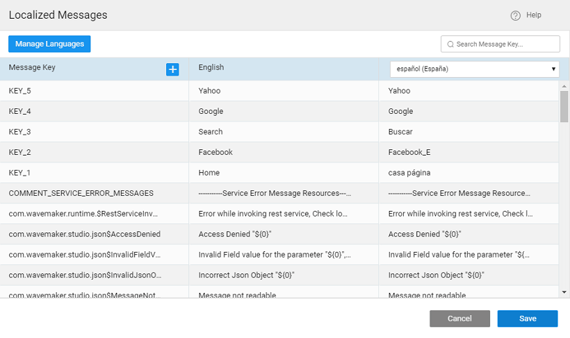 - Use + sign next to Message Key header to open the Localized Message Dialog.