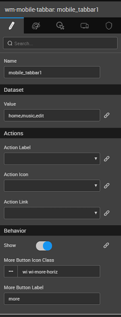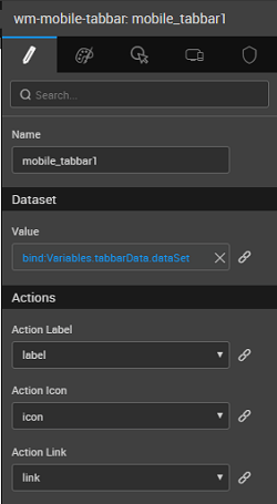 | Action Link | Link for tabbar items to be picked from the fields of the Dataset Value mentioned above or bound to a variable. |