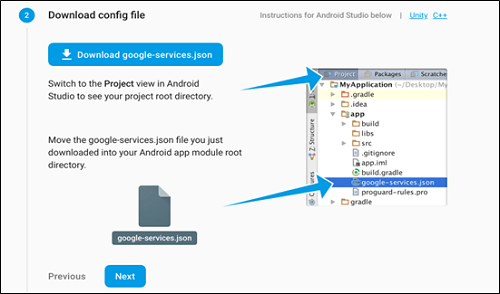 An app for Android should have google-services.json that has all information required for registering with Firebase messaging service. Follow below steps to obtain it: