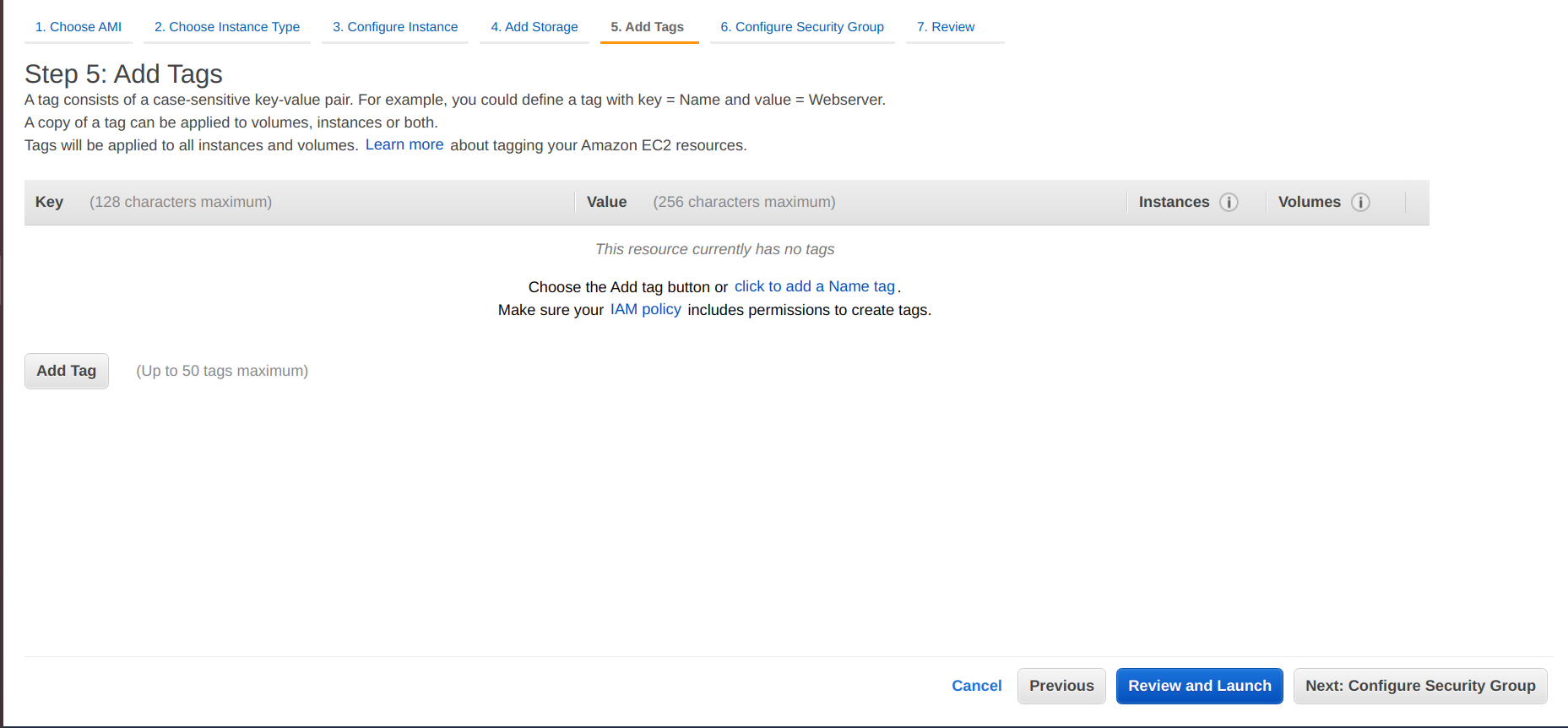 • Next, if you want to add any tags, add tags to the instance.