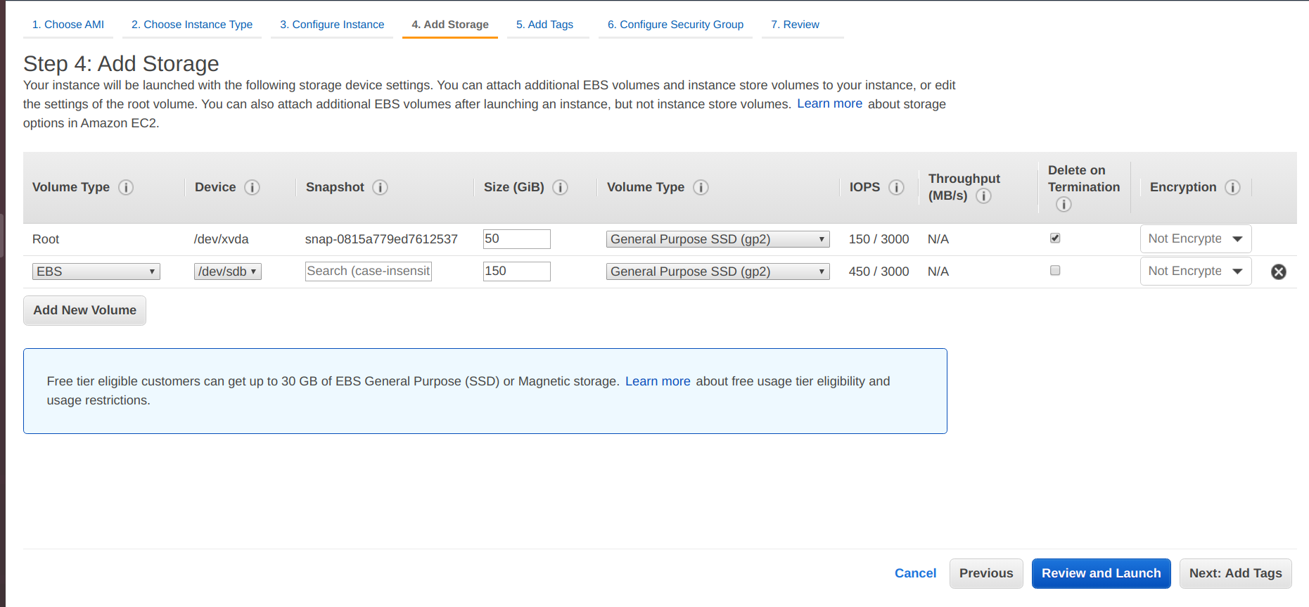• Add storage 100 GiB for the root volume.