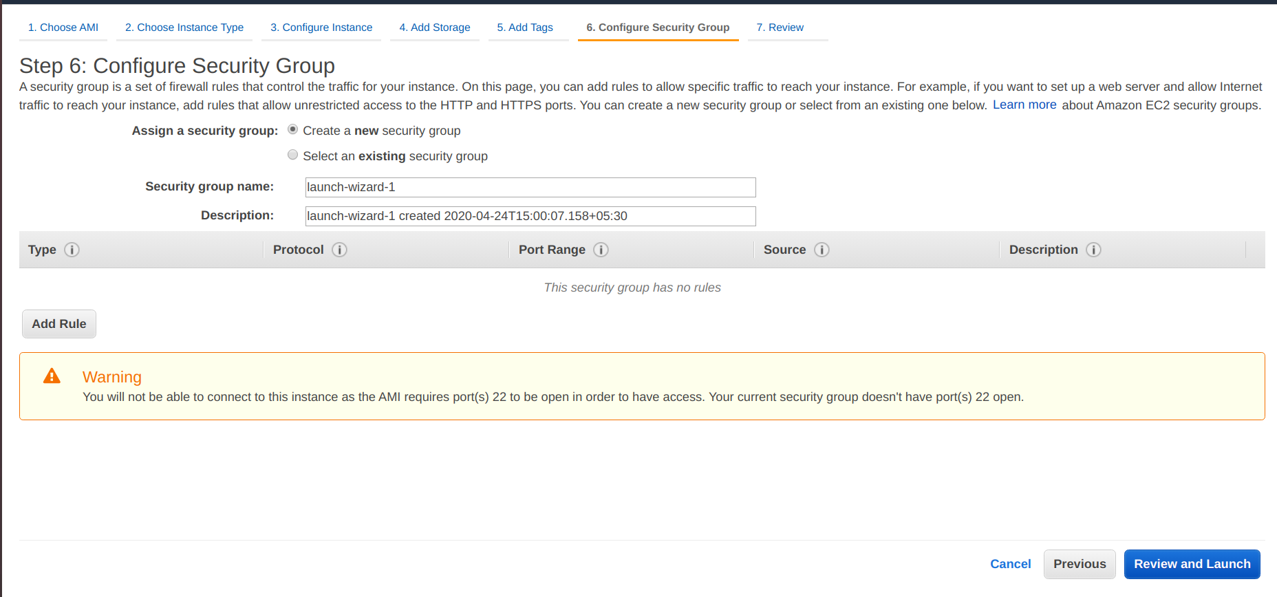 • Next, review your instance details and launch the instance.