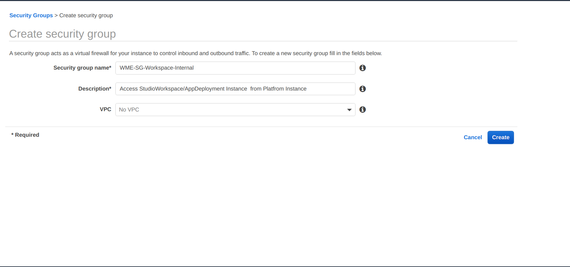 Creating WME-SG-Workspace-Internal Security Group
