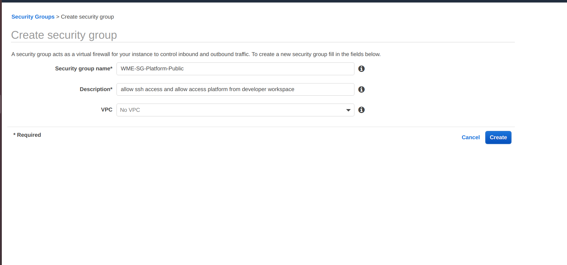 Creation of WME-SG-Platform-Public Security Group