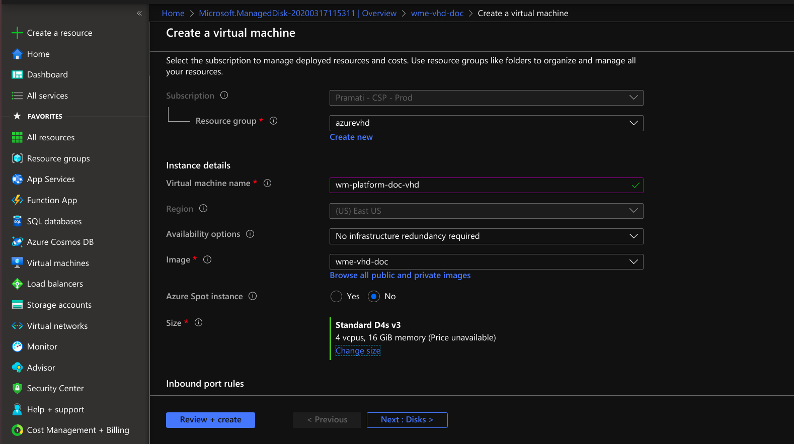 • Select create VM option at the left top. create VM providing required details disks and networking.
